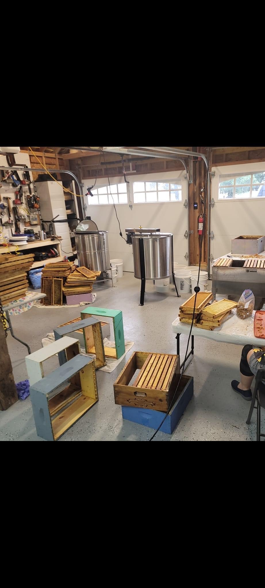 The clean up will begin. Each box will be scrapped saving extra wax and propolis for recycling into other products.