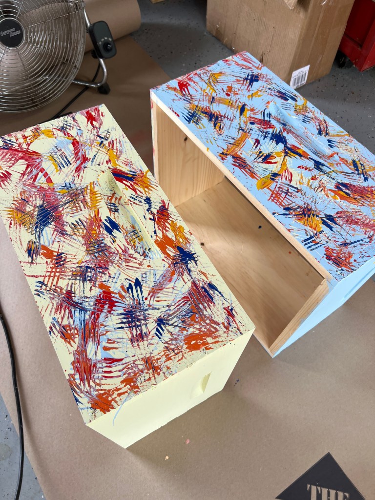 Brian and John putting their childhood artistic Bob Ross lessons to use! Making hive boxes!