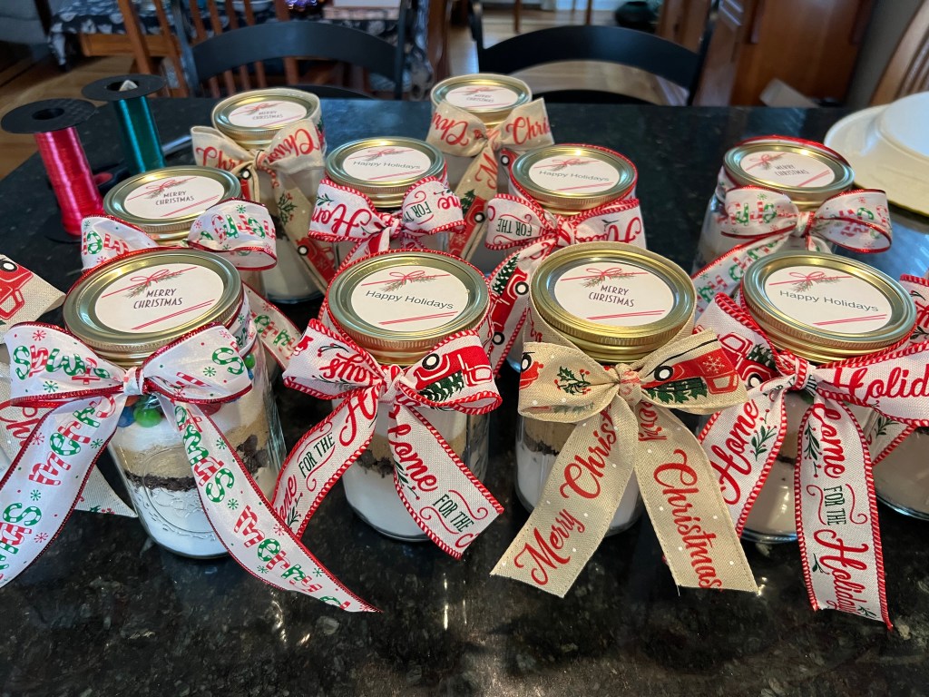 Cookie in a mason jar $15. Just need to add egg, vanilla and butter. All dry ingredients measured in jar. Mix and bake.