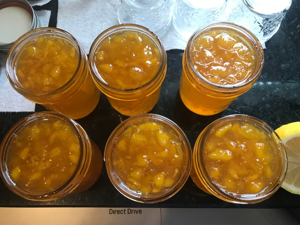 Above is our very popular peach jam. Made from our organically grown peaches in our yard.