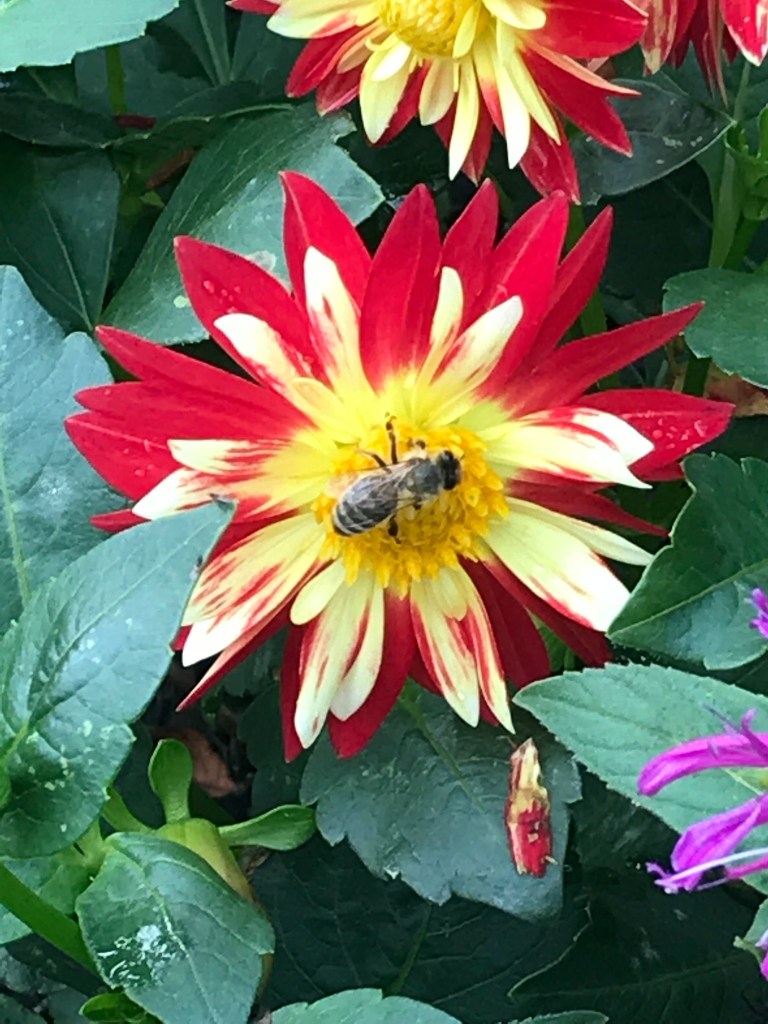 The bees begin the honey making process by leaving the hive, gathering nectar from flowers and plants, and bringing the nectar to the hive.